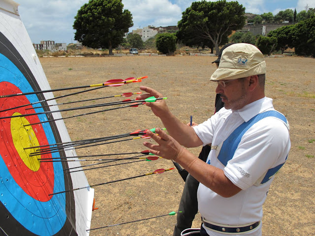 A pesar de todo el viento no fue excusa (todos la sufrimos) y pudimos ver como Cabrera se alzó con el primero y Ramón con el tercer puesto de los arqueros Senior de Arco Olímpico (por muy pocos puntos no quedó segundo), mientras que Rafa disputó sus primeras flechas en competición al aire libre -tras un año de lesión en la espalda- y sin resentirse (al menos por el momento).